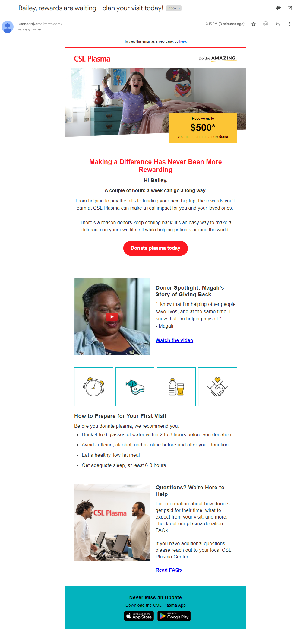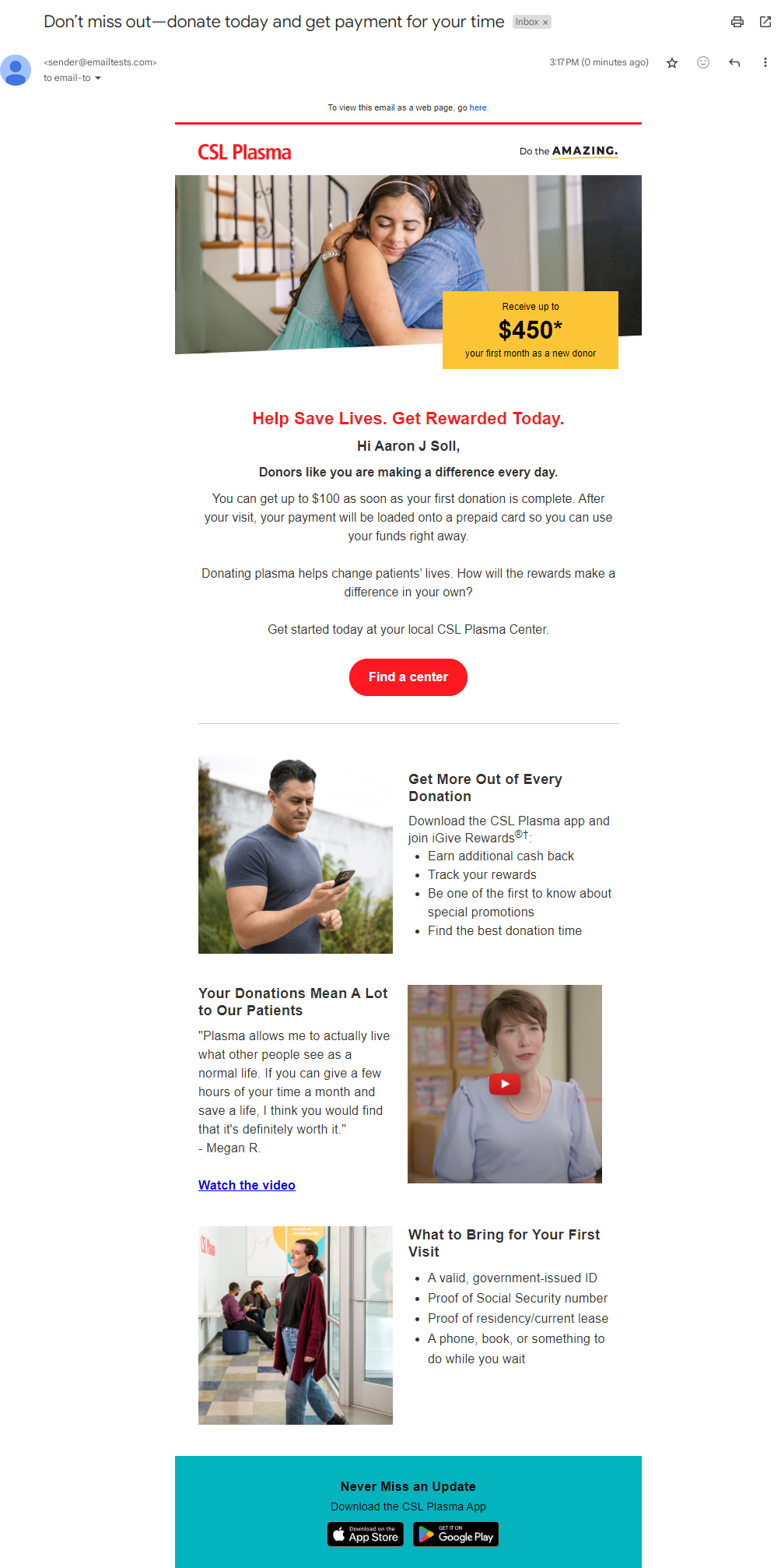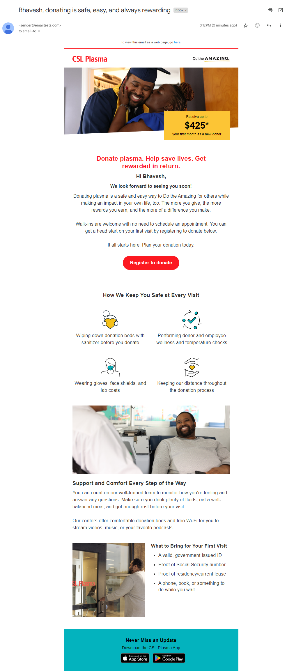 A national plasma donation center that helps create create critical, life-saving medicines.